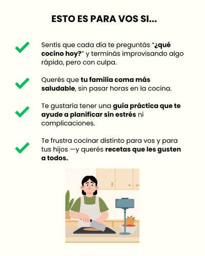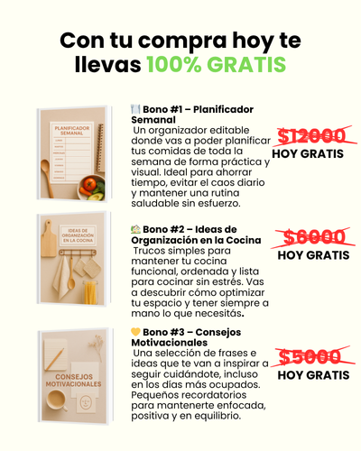 Vas a encontrar tips de organización y planificación para dejar comidas listas o semi preparadas, sin perder sabor ni frescura.